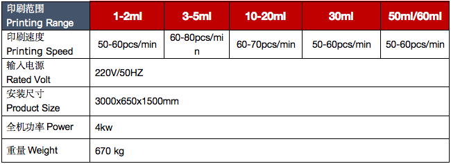 本設(shè)備可進(jìn)行無間隔連續(xù)印刷,鏈條傳動,雙循環(huán)風(fēng)電加熱干燥,配有凸輪分割器,產(chǎn)品間距小,傳動平穩(wěn),干燥速度快。框架為不銹鋼方管,門板為不銹鋼材料。能在同臺機(jī)器上印刷1-50ml注射器,帶有振動料斗及自動供料倉。